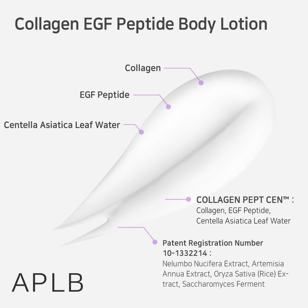 APLB Collagen EGF Peptide Body Lotion contains Collagen and EGF Peptide offers fresh moisture replenishment and a soothing effect for dry skin.