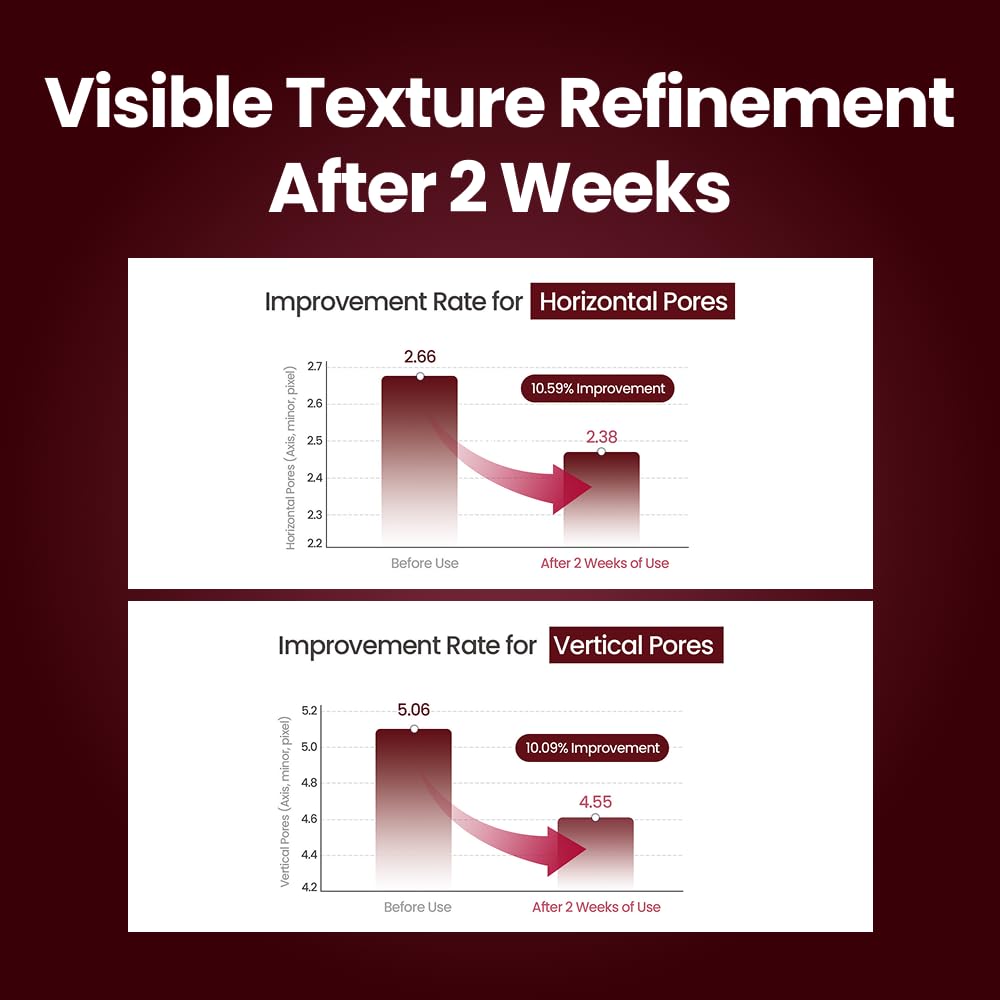 - 10.59% improvement for horizontal pores and 10.09% improvement for vertical pores after 2 weeks of use.