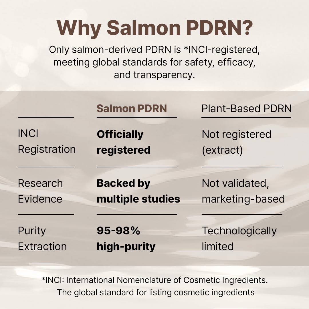 PDRN 1,200ppm: Clinically backed with the optimal absorption-enhancing concentration of 1,200ppm Salmon PDRN to rejuvenate and revitalize the skin.