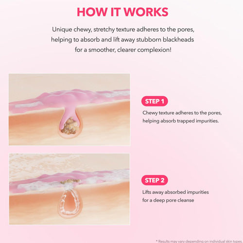 - Chewy and stretchy texture adheres to the pores, helping to absorb and lift away blackheads.