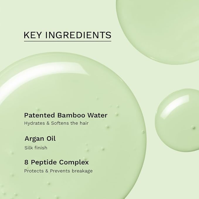 Made with patented bamboo water and shoots, rich in amino acids and minerals. Delivers deep hydration and softness to dry, frizzy ends while helping hair stay smooth and manageable all day.